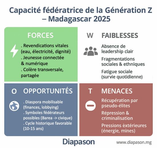 - Clarifier la légitimité du mouvement : une charte Génération Z Madagascar doit définir les valeurs, les lignes rouges et la stratégie de non-violence.