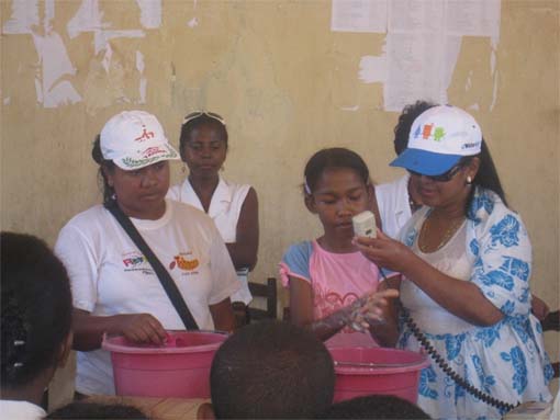 « Mandilatra andro raiky ny fanasana tagnana amin’ny savony » : le lavage des mains avec du savon n’est pas seulement pour un jour, voilà le thème de sensibilisation choisi pour célébrer cette année cette journée. La célébration nationale de la journée mondiale du lavage des mains avec du savon a eu lieu à Mahajanga, le vendredi 15 octobre 2010. La cérémonie s’est déroulée dans l’enceinte de l’EPP Fiofio, fokontany Manjarisoa. La ministre de la Population et des Affaires Sociales Nadine Ramaroson était venue dans la capitale de Boeny, assistée par le Chef de la Région Rasoloniaina Jean Christophe Noël et les autorités locales ainsi que le coordinateur national du DIORANO WASH Rakotondrainibe Herivelo.