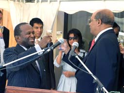 L’Ambassade d’Afrique du Sud à Madagascar a célébré hier matin le 14ème anniversaire de la Freedom Day à la résidence de l’ambassadeur à Ivandry. Lors des discours de présentation de vœux, l’ambassadeur d’Afrique du Sud, Mokgethi Mionaisa, a offert une somme de 214 millions d’ariary au gouvernement Malagasy. Offert au nom de la République d’Afrique du Sud, ce don sera versé au Conseil National de Secours (CNS) pour aider les sinistrés des cyclones Fame et Ivan. Lors de la remise symbolique de la somme au ministre des Affaires étrangères, le Général Marcel Ranjeva, Mokgethi Mionaisa a présenté ses condoléances à l’endroit des familles victimes des deux cataclysmes naturels.