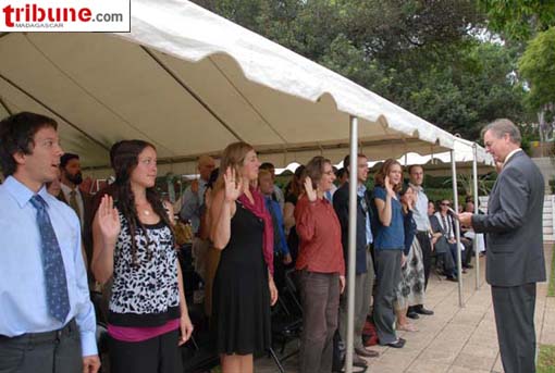 Ce mardi 4 mai, 24 nouveaux volontaires du Corps de la paix ont prêté serment devant l’ambassadeur des États-Unis, Niels Marcquardt, à sa résidence à Antananarivo. 16 de ces nouveaux volontaires travailleront avec leurs homologues malagasy dans la gestion environnementale, tandis que les 8 restants oeuvreront dans le programme sur le développement des petites entreprises.