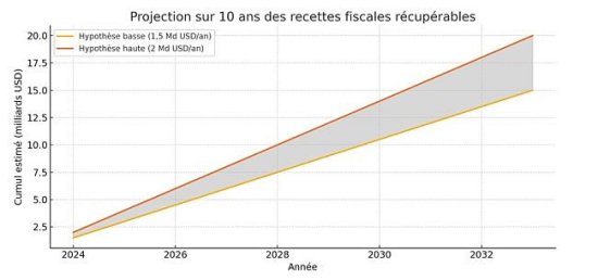 . Projection sur 10 ans des recettes fiscales récupérables si Madagascar corrige ses blocages