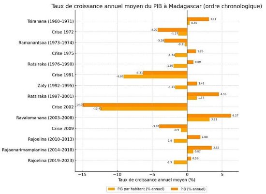 Ce graphique confirme un fait central : la performance économique de Madagascar est profondément corrélée à son instabilité politique et institutionnelle. À cela s’ajoute une faiblesse structurelle de l’État à capter, redistribuer et transformer la richesse.