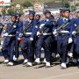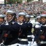 Quel beau défilé , comparés à ceux qui se font en Chine , Corée du Nord, ou URSS, pas un ne marche au pas , quand à celui qui essaye de tirer au Bazooka , dommage que son casque trop grand l’ empêche de voir ce qu’ il vise .