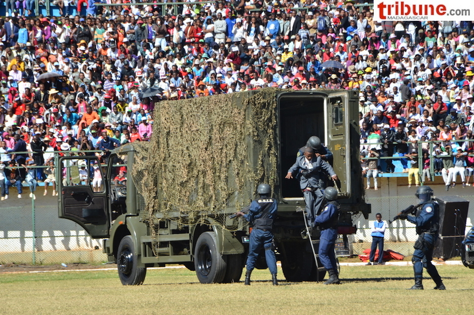 Les DAHALOS doivent bien rire en voyant cette demonstration de commandos de descente d´helicoptere pour maitriser un terroriste !Le defile aerien avec ce petit avion utilise pour repandre des insectcides montre vraiment que MADAGASCAR n´a rien dans l´armee de l´air:PAS D´AVIONS DE COMBAT-PAS D´AVIONS DE CHASSES ! Alors que les GENERAUX foisonnent a flot !le PM est bien GENERAL DE L´ARMEE DE L´AIR non !