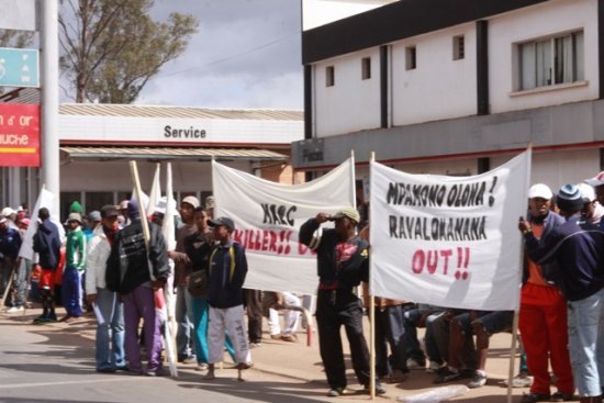 Ce mercredi 14 septembre, des minibus ont été affrétés pour transporter des étudiants à Ivato. L’EXOPOLES, dissident de l’ESCOPOL, a organisé une manifestation bien encadrée et tenue sous les yeux des forces de l’ordre, le long de la route près de l’aéroport ; soit disant pour faire pression pour que la SADC et les acteurs politiques mettent fin à la crise sinon, selon son chef, Cyrille Rasambozafy, le groupement incitera et conduira une descente dans les rues. Des haies de foules nombreuses apparemment racolées ici et là ont brandi des banderoles réclamant, ici à l’adresse de la SADC, une solution à la crise ; là-bas, des banderoles signifiant à la SADC que Marc Ravalomanana est un assassin.