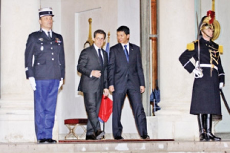 Comme prévu, le président de la transition, Andry Rajoelina, a été reçu en audience par le président français, Nicolas Sarkozy ce mercredi 7 décembre 2011. Un tête-à-tête de 15 minutes a précédé la table ronde avec leurs proches collaborateurs pour faire le point de la situation et s’échanger des points de vue sur l’avancement de la feuille de route. C’est lors de cette table ronde que le président français a expliqué cette visite officielle et la raison de sa reconnaissance d’Andry Rajoelina come chef d’État de transition. Sarkozy disait précisément : « une Transition crédible, appuyée par la communauté internationale, est actuellement installée à Madagascar. Raison qui m’a amené à vous recevoir, ici au Palais de l’Elysée, en tant que chef d’État ».