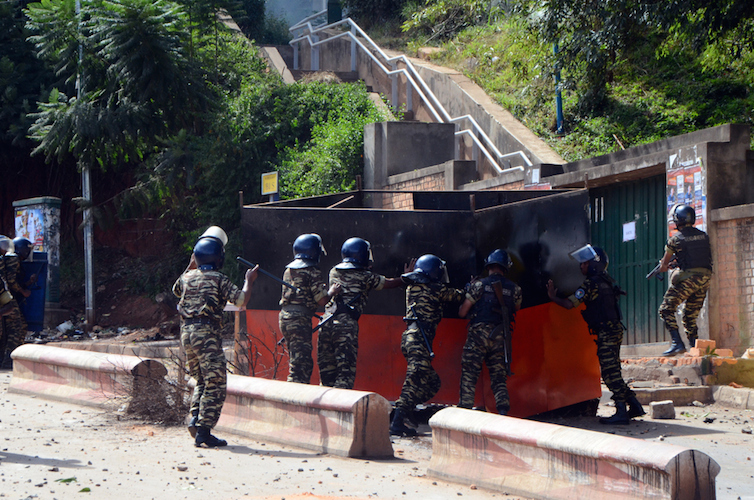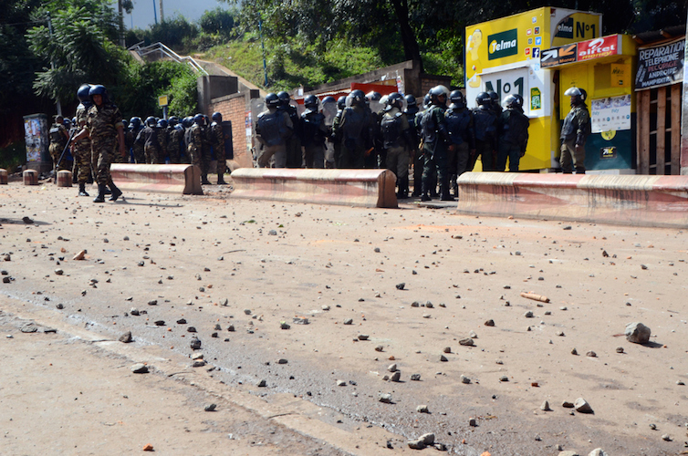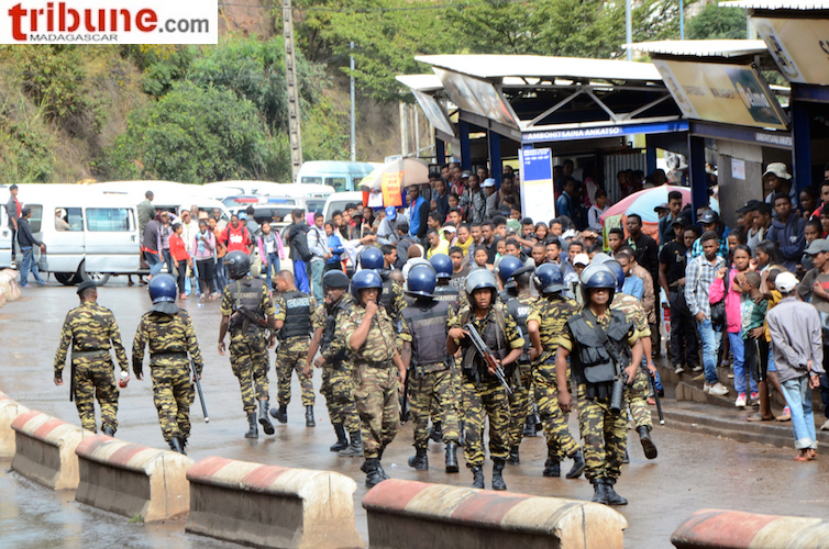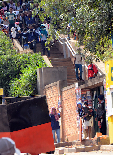Les jets de grenades lacrymogènes contre les jets de pierres ont repris ce 16 mai 2017 au campus de l’université d’Antananarivo à Ankatso ; bilan : un passant blessé. La confrontation a duré près de deux heures dans les escaliers conduisant au portail/terminus des taxibe où les forces de l’ordre de l’Etat major mixte opérationnel (EMMO) ont empêché les étudiants de manifester en les contenant dans l’enceinte de l’université à coups de grenades lacrymogènes.