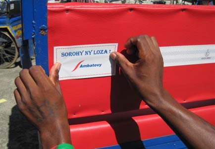 La circulation des cyclo-pousses est, en effet, un problème récurrent à Toamasina, compte tenu de leur nombre et du niveau d’instruction de leurs conducteurs. Des séances de sensibilisation en HSE, par le biais de collaboration entre la Commune urbaine de Toamasina et Ambatovy, leur permettront d’améliorer leurs connaissances en matière de Code de la route et autres conduites : bonne attitude, respect de la distance entre le pousse-pousse et un autre véhicule, visibilité avec les autocollants réfléchissants.