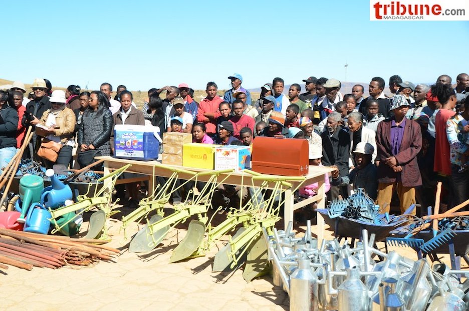 Outre les soutiens au quotidien qu’apportent déjà le PAM et l’UNICEF, pour l’occasion, ces organismes partenaires et le FNUAP ont remis divers matériels et équipements qui favoriseront leur intégration et la pratique agricole comme les charrues, les herses, les angady et les arrosoirs. Le président Hery Rajaonarimampianina a, quant à lui, promis l’envoi d’un tracteur pour aider au labour des terres dès la semaine prochaine ; des lopins de terre seront attribués aux familles anciennement installées et il sera procédé de même pour les nouveaux arrivants au bout de 5 ans.