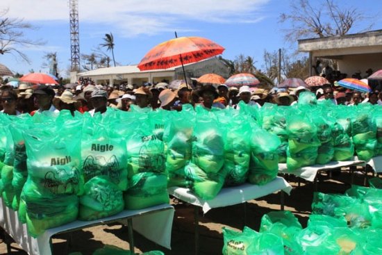 Le président de la transition Andry Rajoelina a apporté ce jeudi 23 février des aides (savon, riz, bougies, médicaments, moustiquaires, habillement), mais aussi une enveloppe financière destinée « à alléger la peine des populations », aux sinistrés du cyclone Giovanna de Brickaville et de Vatomandry. Ces deux districts se sont vus promettre le rétablissement de l’électricité incessamment. La réhabilitation des centres hospitaliers est la priorité selon le président de la transition qui a également offert des matériaux de construction (bois, clous…) et des semences pour assurer, précise-t-il l’autosuffisance alimentaire car la politique de son régime est la « politique du ventre », reprenant ainsi celle du président Tsiranana.