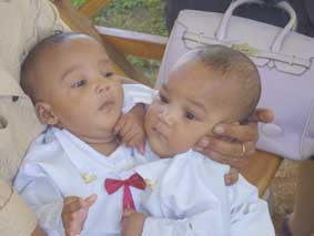Les deux frères siamois sont en très bonne santé ; ils ont gagné en poids et en vivacité depuis leur arrivée dans ce complexe mère-enfant le 2 juillet 2008. De 2,080 kg voici près de six mois, ils pèsent aujourd’hui 10, 800 kg. Le personnel du Pavillon Sainte Fleur a organisé une petite fête à cette occasion.