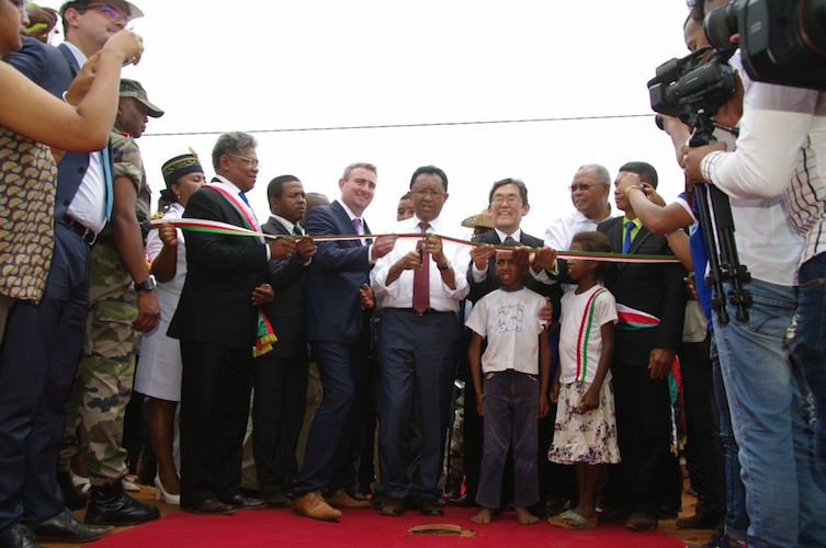 Il s’agit d’une localité située à un peu moins de 300 kilomètres de la capitale Antananarivo, dans le district de Tsiroanomandidy, région Bongolava qui accède pour la première fois à l’électricité. Une centrale solaire a été inaugurée hier 27 octobre 2017 par le président de la République Hery Rajaonarimampianina et l’ambassadeur des Etats-Unis d’Amérique à Madagascar Robert Yamate. En effet, cette centrale a vu le jour grâce au programme américain « Power Africa » qui vise l’élargissement de l’accès à l’énergie en Afrique Subsaharienne. Cette centrale photovoltaïque de Belobaka est la première parmi les 100 autres unités qui seront mises en place à travers le pays. Et ce avec un financement d’USD 63 millions de la part des Etats-Unis, à travers l’USTDA ou Agence américaine pour le commerce et le développement. Cette inauguration devient donc le point de départ du projet 100 villages pour une étude technique et économique du projet d’implantation d’unités de production photovoltaïque alimentant un mini-réseau de distribution. Et ceci avec une technologie de stockage sur batterie intégrée dans 100 sites à travers tout Madagascar. « La mise en œuvre du projet veut qu’à travers « Villages malgaches » résulte une installation pouvant aller jusqu’à 10 mégawatts généré par énergie solaire avec une batterie capable de stocker jusqu’à 88 mégawatts pour servir à plus de 27,000 ménages et entreprises à Madagascar » a déclaré l’ambassadeur des Etats-Unis lors de l’inauguration.