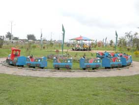 En passant au parc, on a aperçu quelques employés en train de faire des dallages. Une grande partie des travaux est faite. Les aires de jeux réservées aux enfants sont en place. Les auto-tamponneuses, le cheval de bois, les mini-trains y sont installés. Apparemment, ils n’attendent que les visiteurs. Les lieux de la promenade, le chemin qui mène aux différents coins sont bien aménagés.