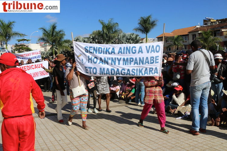 « [Efa andrasana ihany koa ny fisehoan’ny sampany ao amin’ny Fitsarana sy eny amin’ny Oniversité ato ho ato. Ny ao amin’ny “Solidarité syndicale de Madagascar” moa dia efa nanao ny anjarany amin’ny antso avo manentana ny mpiasa hitokona : http://gvalosoa.com/?p=49554] »