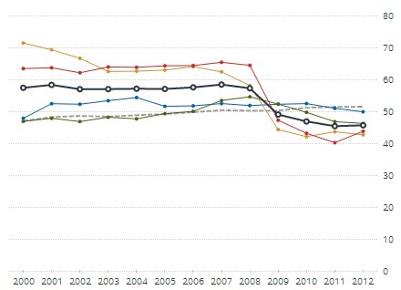 En rappelant que le Gouvernement d’Union nationale n’a vu le jour qu’en 2011, le graphe ci-après représente l’évolution depuis 13 ans de l’Indice Mo Ibrahim de la gouvernance africaine, et illustre la chute de Madagascar dans le domaine de la gouvernance à partir de 2009. Le bilan actuel est donc irrémédiablement le bilan de Rajoelina.