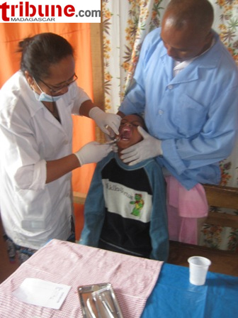 Plus de 200 élèves de l’EPP Manjaka Ilafy ont pu bénéficier de soins bucco-dentaires, de médicaments conséquents ainsi que de brosses à dents neuves et de pâte dentifrice. L’association à but social Soroptimist International Club Doyen Tanamasoandro d’Antananarivo s’est mobilisée afin de trouver des donateurs qui ont cédé des matériels sanitaires et des dons. La société Socobis a pris en charge le petit déjeuner des enfants ce mardi 3 avril, tandis que Cello et la papeterie Momo ont offert des fournitures scolaires et des matériels didactiques pour l’EPP. La société Formula, de son coté, a offert plus de 200 tubes de dentifrice et brosses à dents. Des dons parmi tant d’autres certes, mais qui ont fait le bonheur mais aussi la douleur des enfants car des soins dentaires ont été octroyés sur place.