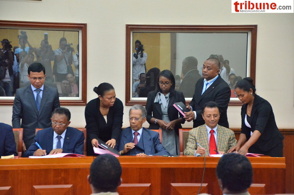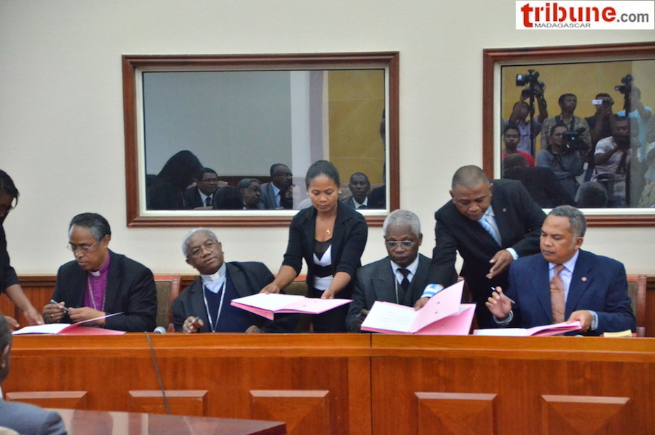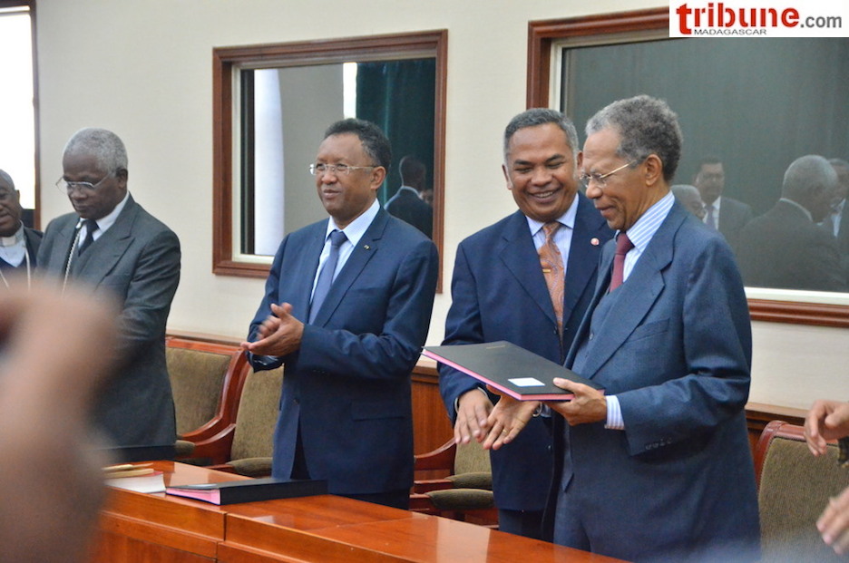 Les anciens présidents de la République, Didier Ratsiraka et Marc Ravalomanana étaient présents à cette cérémonie de signature, ainsi que tous les membres du FFKM. Il s’agit maintenant de concrétiser ces recommandations, qui, selon le FFKM, vont sortir définitivement le pays de la situation de crise. « Mais, la réconciliation nationale n’est pas encore achevée, car le processus suit son cours et le chemin est encore long » a déclaré le Pasteur Lala Rasendrahasina, président du FFKM.