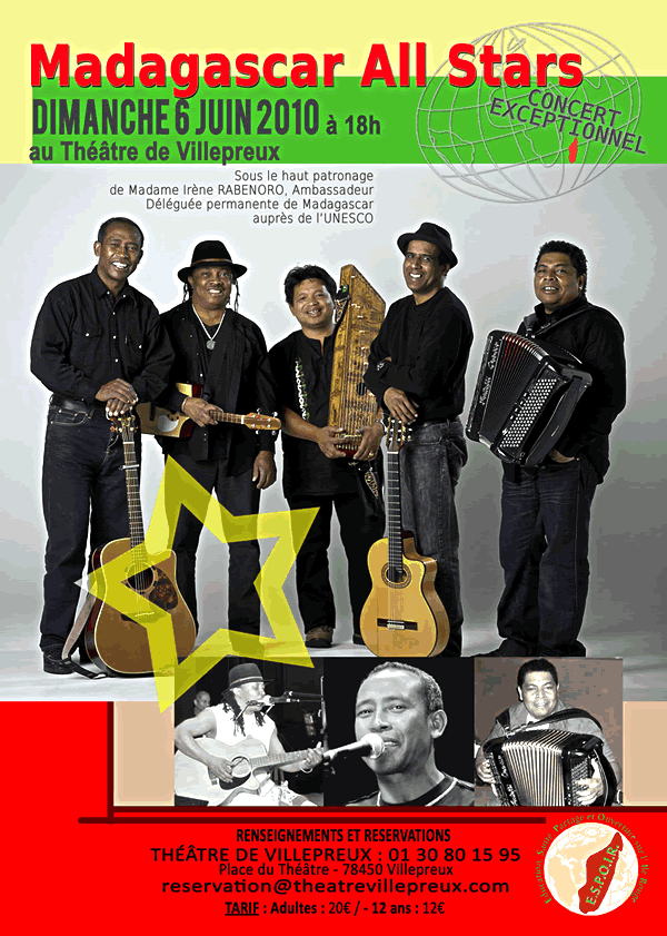 L’Association ESPOIR organise un concert exceptionnel à l’occasion de son 10ème anniversaire dimanche 6 juin à 18h avec THE MADAGASCAR ALL STARS au théâtre de Villepreux.