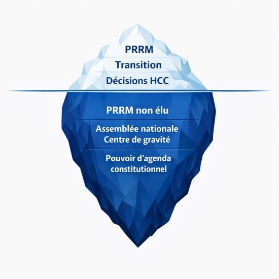 C’est dans ce contexte que le PRRM a été installé à l’issue d’un processus juridiquement validé mais politiquement contraint. Point décisif : le PRRM n’a pas été élu par le peuple. Il ne tire pas sa légitimité d’un suffrage direct, mais d’un mécanisme de continuité activé par la HCC. Cette origine borne son périmètre : assurer la continuité de l’État, sans pouvoir refondre en profondeur l’architecture institutionnelle pendant la période transitoire.