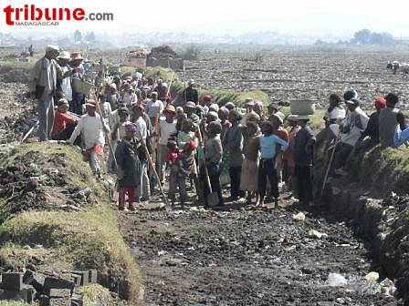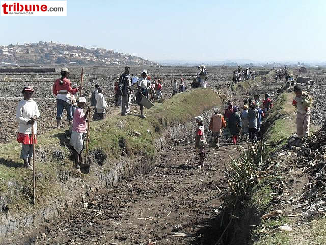 3 kilomètres de canaux ont fait l’objet d’un curage dans la journée de ce jeudi 13 août 2009, en présence du ministre de la Haute Autorité de transition (HAT) en charge de l’Aménagement du territoire et de la Décentralisation. Il s’agit de canaux qui desservent quatre communes : Bemasoandro, Ambohidrapeto, Fiombonana et Ankadimanga. 1 200 ha de terrain sont servis par ces canaux. Les travaux s’effectuent dans le système de Haute Intensité de Main d’Oeuvre ou HIMO. 200 personnes par jour vont travailler sur le curage de ces canaux, pendant 10 jours.