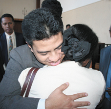 La joie bien compréhensible de David Rajaon étreignant une de ses proches.