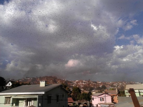 Invasion acridienne dans la capitale durant tout l’après-midi de ce jeudi 28 août 2014. Des nuages de criquets ont assombri par moments divers quartiers de la Ville des Mille. Les criquets ont essaimé les districts d’Antananarivo Renivohitra, d’Atsimondrano et jusque dans l’Avaradrano. Les quartiers d’Itaosy, Andavamamba, Ampefiloha, Anosy, 67ha, Ambohitsorohitra, Analakely, Behoririka, Ankadifotsy, Ambanidia, Ambatoroka, Ambatomaro, Ivato, Ambohibao et même d’Analakely ou d’Antaninarenina… ont été assaillis par des vagues de nuages de grosses sauterelles. Si des habitants des quartiers les chassent de leurs champs de culture, d’autre par contre les ramassent pour leur servir d’accompagnement pour leurs maigres repas du soir et pour le lendemain.