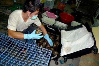 La saisie de samedi fait partie de plusieurs grandes captures similaires que la région a connu cette année. Il y a un peu plus d’une semaine, les mêmes autorités thaïlandaises ont arrêté un pakistanais de 44 ans qui tentait d’introduire clandestinement dans le pays 1440 tortues étoilées indiennes et un crocodile Gavial emballés dans quatre valises. C’était la deuxième fois que cet individu était arrêté.