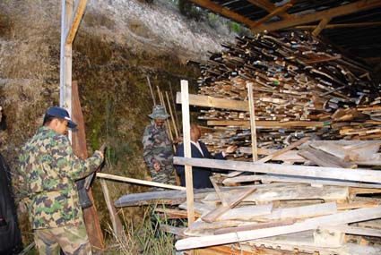 Néanmoins, des lots importants de bois de rose, coupés en planches mais non encore travaillés, ont été découverts sous un hangar situé un peu en amont dudit site.