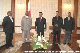 Pour le président de la République Marc Ravalomanana, il importe que le « FFKM puisse être au fait des politiques et programmes de l’Etat » afin de soutenir les actions de sensibilisation de la population à fournir davantage d’efforts pour la production. Il a reçu les quatre Chefs d’Eglise du FFKM, les Pasteurs Rasendrahasina Lala et Rakoto Endor Modeste, Mgr Odon Marie Arsène Razanakolona et Mgr Ranarivelo Samoela Jaona, au cours d’un déjeuner, hier au palais d’Etat d’Iavoloha. Une rencontre qui intervient traditionnellement entre « Raiamandreny » et « Zanaka » en cette période de l’année, et qui, selon le chef de l’Etat, aura permis aux deux parties de discuter et d’échanger des points de vue dans le cadre de la collaboration et du partenariat à établir pour la réalisation des défis de cette nouvelle année.