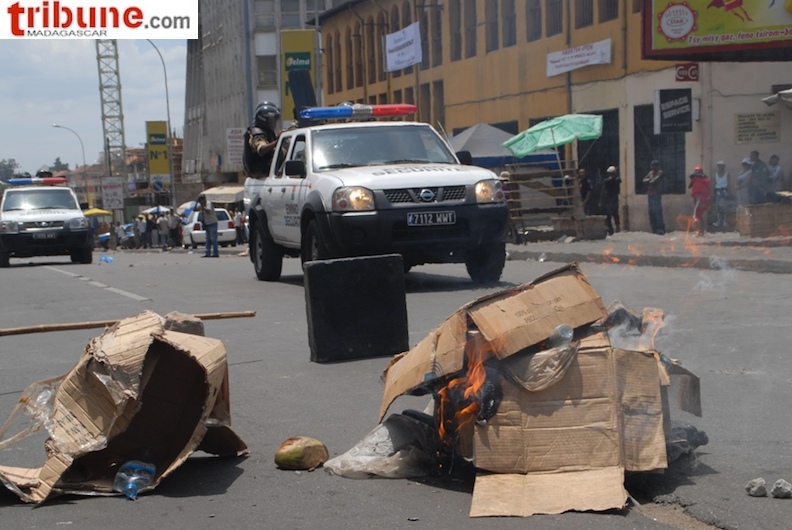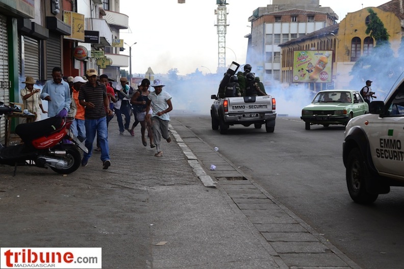 Certains militants ne sont pas de cet avis, ils sont venus à Ambohijatovo dans un premier temps et n’ont pas accepté de se disperser. Ils sont ensuite descendus du côté d’Analakely pour rejoindre la place du 13 mai. Ils ont dressé des barrages du côté de l’esplanade où a commencé l’affrontement avec les forces de l’ordre qui ont lancé des grenades lacrymogènes. Bilan de l’échauffourée : trois personnes arrêtées dont un blessé qui a perdu des doigts en tentant de soulever un moellon.
