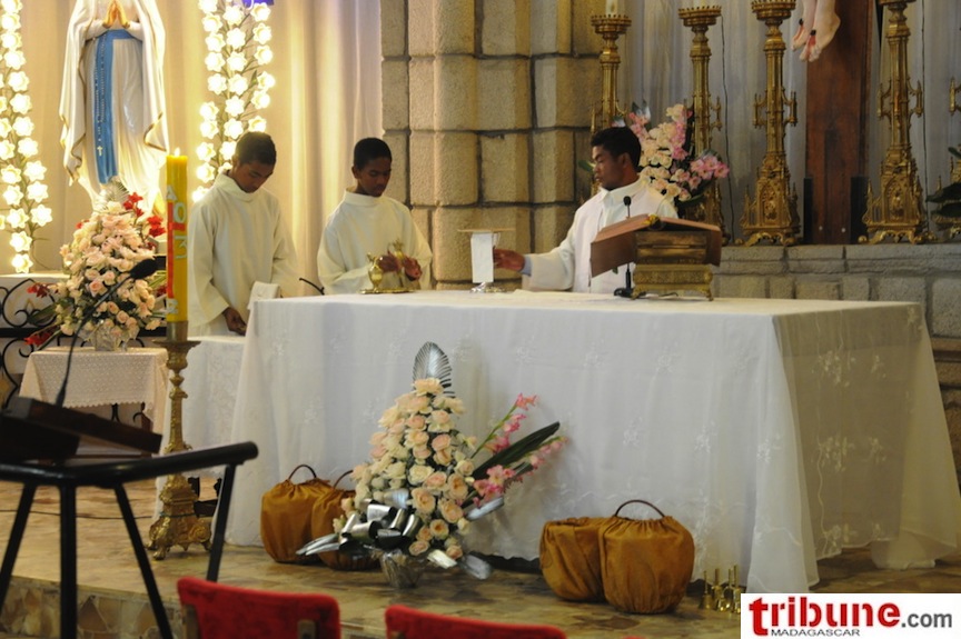 Le premier geste public du candidat du TGV ce dimanche 7 avril a été de prier ; cet après-midi du 7 avril, une messe a été organisée à la cathédrale catholique à Andohalo.
