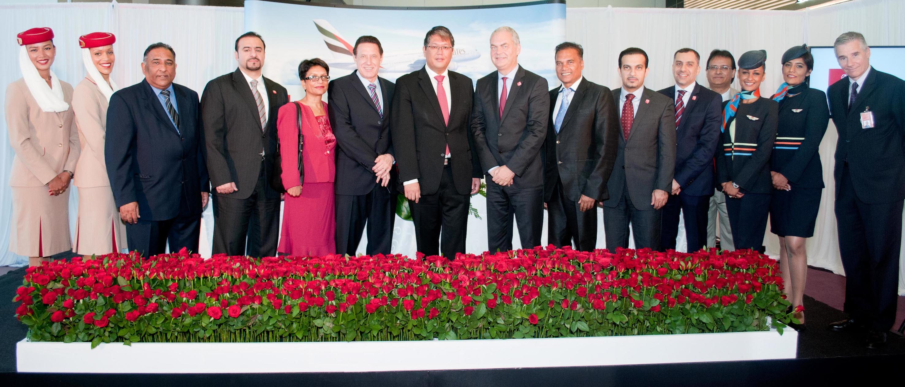 Le vol inaugural du service quotidien en A380 vers Maurice est arrivé au Sir Seewoosagur Ramgoolam International Airport de Maurice avec plus de 500 passagers et une délégation de VIP d’Emirates, comprenant une importante délégation d’Emirates conduite par Thierry Antinori, Executive Vice President, Chief Commercial Officer. Thierry Antinori, a déclaré à sa descente d’avion que « La mise en service de notre A380 vers Maurice veut dire que des passagers venant des marchés clés comme Londres, Paris, Moscou et Shangaï, voyageant en transit via notre hub de Dubaï, ont maintenant la possibilité de vivre une authentique expérience avec l’A380 d’Emirates, y compris les produits et services proposés en première classe, en classe affaires et classe économique qui font la renommée de la compagnie aérienne. Cela veut aussi dire que l’appareil d’une grande capacité, renforcera notre soutien à l’industrie touristique du pays et contribuera aux échanges commerciaux ».