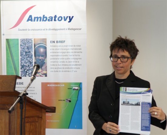 « Le Projet Ambatovy est une société minière qui se veut transparente et responsable dans son engagement à Madagascar. Il nous faut des outils pour faire découvrir, à vous-mêmes de la presse et à l’ensemble du public, ce que nous faisons, notre vision, nos valeurs et aussi nos contributions pour le développement », a déclaré le Président directeur général adjoint du Projet Ambatovy, Juanita Montalvo, lors de cette présentation officielle. Elle poursuit : « Il faut bien l’admettre, beaucoup de préjugés et de questions subsistent, pas seulement sur Ambatovy mais sur l’ensemble de l’industrie minière qui est relativement nouvelle à Madagascar. Nous pensons qu’il est important de se donner le temps nécessaire pour expliquer et de développer les outils appropriés pour répondre à ces questions », a-t-elle poursuivi.