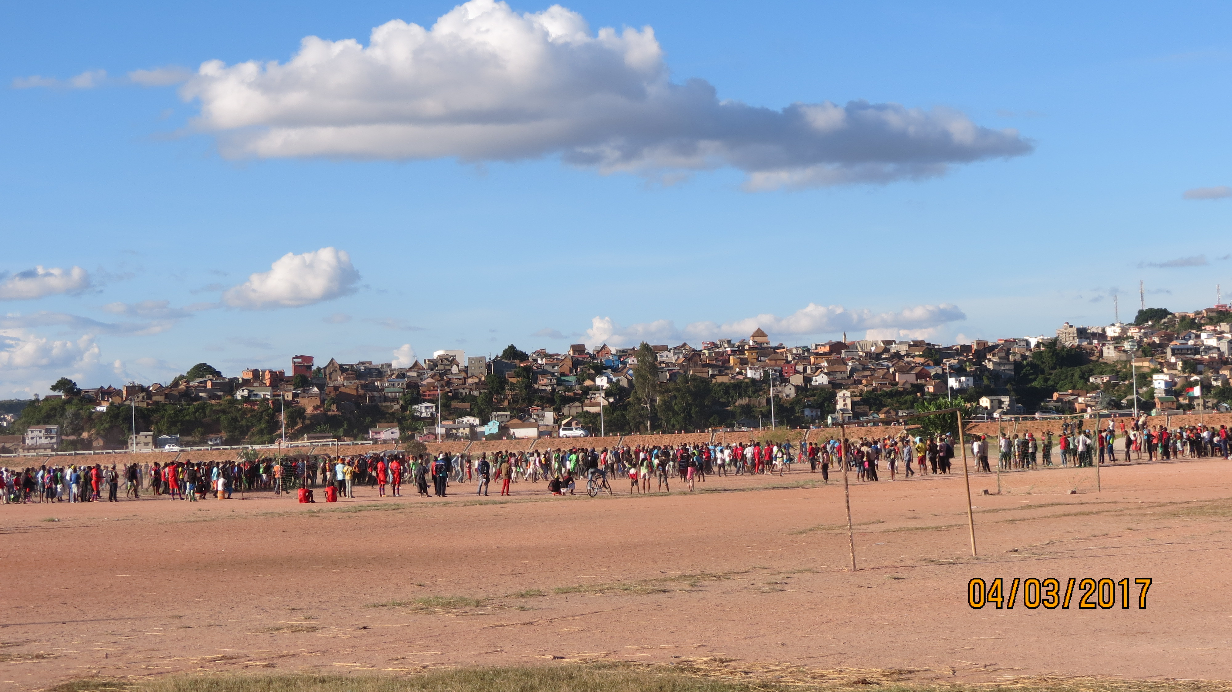 Car tous les dimanches, je retrouve ces centaines de sportifs à la recherche d’espace pour un match de foot ou de rugby. Beaucoup de week-ends, du côté d’Ambatomirahavavy par exemple, des familles se tassent dans leur véhicule, font un tour en auto en dehors d’Antananarivo, voir les collines encore inoccupées et déguster maïs grillé en contemplant le paysage. Ils prennent de l’air, essaient de se changer les idées. Tous les lundis de pâques, des familles entières sortent piqueniquer sur le bypass. Je m’émerveille de voir ces personnes assises au bord de la route, sur le peu de gazon, à quelques centimètres des voitures qui passent, heureuses de faire leur piquenique en regardant l’étendue de ce qui étaient des rizières et le palais de la Reine qui les surplombe. Quel besoin immense d’espaces et de verdures pour les sorties, les piqueniques et le sport. À part le jardin d’Ambohijatovo, et le minuscule parc du Marais Masay, qu’avons-nous comme options ? Tous les autres jardins sont maintenant clôturés, pour mieux préserver la salubrité et les plantes, je comprends, mais en excluant l’utilisation par la population (à l’exception peut-être de l’exceptionnel jardin d’Antaninarenina avec bancs et verdure).