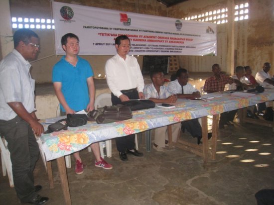 L’installation et les activités des ces nouveaux éléments humains et mécaniques auront des impacts sur l’équilibre social et sur l’environnement naturel dans les 3 communes de forage. Aussi le vendredi 08 et le samedi 09 avril derniers, l’ONE par le biais du CTE a procédé aux consultations publiques dans les communes de Soalala, d’Ambohipaky, et d’Ankasakasa. Le DG de la société WISCO, Luo Yan Jun, était présent durant toutes ces rencontres avec les populations locales.