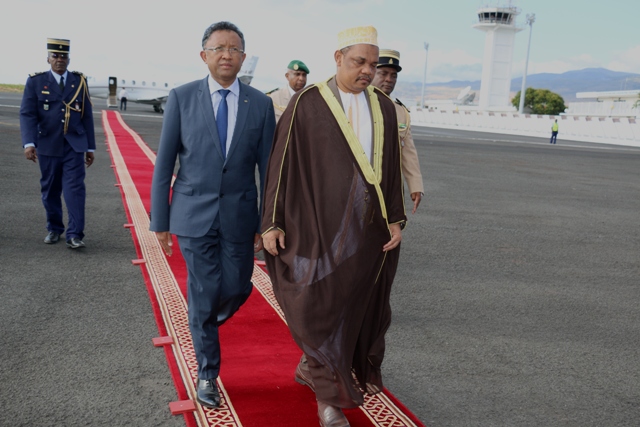 Le chef d’État malgache a été accueilli à l’aéroport de Hahaya par le président de l’Union des Comores, Ikililou Dhoinine, accompagné de plusieurs personnalités étrangères, dont le secrétaire général de la COI, et des ministres des Affaires étrangères de quelques pays participants à la Conférence.