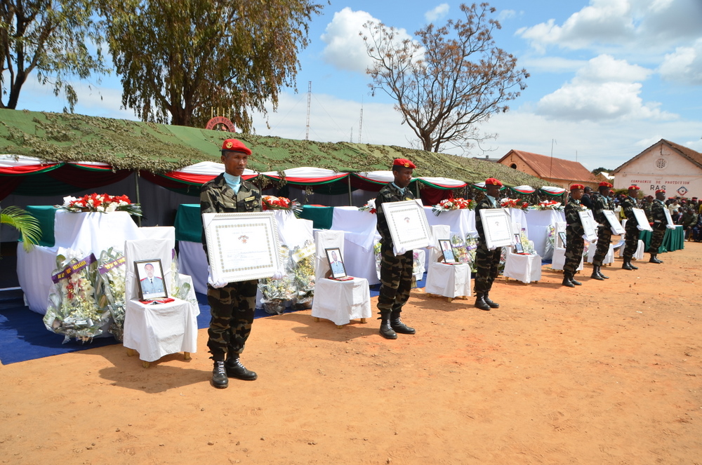 A l’occasion de la levée des corps au camp du Génie militaire d’Ampahibe hier, 5 soldats ont été élevés, à titre posthume, au grade de Sergent Chef ; il s’agit de :