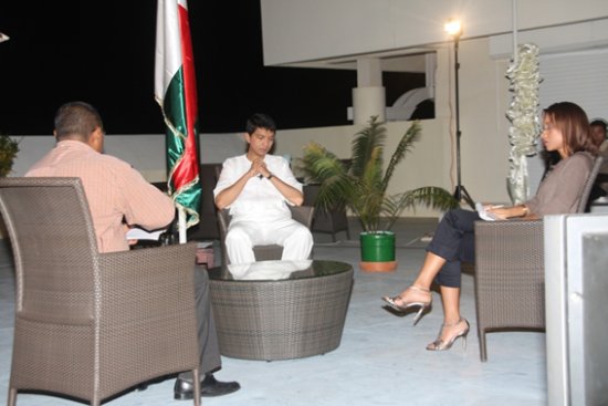 Saisissant l’occasion d’une question relative à l’arrivée du médiateur dans la crise malgache, Joachim Chissano, Andry Rajoelina affirme qu’il n’a pas invité ce dernier et qu’il n’a su sa visite dans le pays que trois jours avant son séjour. Andry Rajoelina n’a pas insinué qu’il le recevrait en audience aussitôt qu’il rentrera dans la capitale. Au contraire, il a fait comprendre qu’il n’y a pas de crise à résoudre et que le problème doit être résolu entre Malgaches en toute souveraineté et au nom de la fierté nationale. Autrement dit, plus besoin de la communauté internationale qui a tout essayé mais qui a échoué ; et c’est une des raisons pour laquelle, dit-il, il a dissout sa mouvance et s’est désengagé de ces questions de mouvances ; il est aujourd’hui, au dessus de ces questions politiques de mouvances et il veut conduire rapidement le pays jusqu’à l’avènement de la 4e République. C’est à peine s’il n’a pas envoyé l’ancien président du Mozambique promener. Le consensuel et l’inclusif ne marchent plus, signifie-t-il à ses interlocuteurs ; il est en train de mettre en œuvre la transition neutre et c’est la raison pour laquelle il a annoncé qu’il ne sera pas candidat à l’élection présidentielle, réitère-t-il.