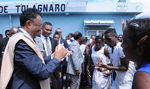 Le 18 mars dernier, le président de la République, Hery Rajaonarimampianina, s’est rendu à Mahatalaky, à 52km de Toalagnaro, là où sont concentrées les aides de l’Union européenne, lit-on dans le communiqué de la Présidence. Le président de la République a déclaré, à l’issue de cette visite : « Je ne vois plus les problèmes, tout est résolu pour la Région Anosy. Les routes RN12A et RN13 sont maintenant sur la voie de la réhabilitation, les agriculteurs sont satisfaits de leurs productions, les jeunes ont leur écoles, des appuis sont consacrés au CSB. C’est parti pour le développement » a-t-il déclaré à son départ de l’aéroport de Tolagnaro.