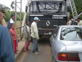 Tokony hijanona ity kamiao nefa tsy nanao izany fa niditra ny tetezana ihany. Hany herin’ilay nitondra ny fiara kely dia nijanona sy niandry izay higadonany sisa. Tsy maintsy niseho ny fifandonana izay mafy dia mafy tokoa tao anaty tetezana, ary dia natosik’ilay kamiao niverina 7 metatra mahery ilay fiara kely vao tafajanona ilay kamiao