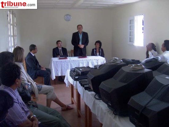 Ce mercredi 14 avril 2010, le Bureau de la Banque mondiale a remis à titre de don un lot de matériel informatique réformé à des œuvres de bienfaisance, ainsi qu’à l’École Nationale d’Informatique (ENI) de Fianarantsoa. Cette donation concerne 8 ordinateurs de bureau, 15 ordinateurs portables, et un video-projecteur. Ces équipements ont été répartis entre 7 organisations caritatives (SOS Villages d’Enfants, Les Orchidées Blanches, Graines de Bitumes, Akany Solofo, Centre St. Jean, Fazako, et Topaza), sur la base d’une évaluation effectuée par la Banque mondiale au sujet des besoins de ces structures, et leur capacité d’utilisation. Par ailleurs deux serveurs ont été octroyés à l’ENI de Fianarantsoa.
