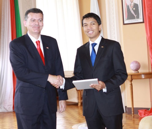 Si Carlos Orga était Chargé d’affaires, Eric Mayoraz a rang d’ambassadeur résident et plénipotentiaire de la Confédération helvétique à Madagascar avec résidence à Antananarivo. Il a remis ce vendredi 2 décembre au président de la transition, Andry Rajoelina les lettres de créance qui le désignent ambassadeur pour un mandat de 4 ans pour le compte à Madagascar de la Confédération helvétique. Un camouflet pour le GTT international Genève et pour ceux qui font tout pour que le régime de transition demeure isolé, mais un encouragement pour la poursuite du processus de mise en œuvre de la feuille de route et pour les acteurs du développement rural dans le pays.