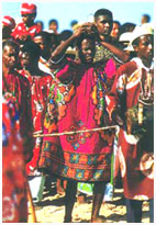 Quant aux jeunes, ils vont puiser l’eau , qui servira à laver la plaie des circoncis, à une rivière sacrée . A leur retour, un simulacre de bataille a lieu avec les gens du village qui tentent de renverser leurs calebasses.