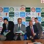 Sur la photo de gauche à droite : le représentant du FMI, le gouverneur de la Banque centrale, le ministre des Finances, la représentante de la Banque mondiale et le représentant de la BAD.