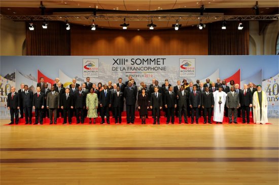 Nous, Chefs d’État et de gouvernement des pays ayant le français en partage, réunis les 23 et 24 octobre 2010 à Montreux, en Suisse, à l’occasion du XIIIe Sommet de la Francophonie,