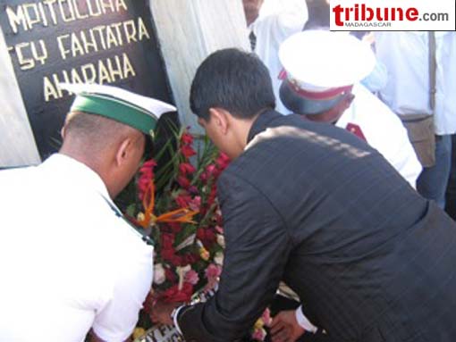 Contrairement à Ambohijatovo, le calme a régné au Mausolée dans l’après-midi de ce lundi 29 mars 2010. Pour la cérémonie de dépôt des gerbes, le président de la Haute Autorité de la Transition (HAT), Andry Rajoelina, accompagné de son épouse, est arrivé sur le lieu aux environs de 15 heures. Le Premier ministre, le colonel Albert Camille Vital quant à lui est arrivé 15 minutes auparavant, après que tous les ministres ont pu rejoindre les places qui leur sont réservées. Une heure avant la cérémonie, la route reliant Ampandrianomby et le Mausolée a été interdite aux transports en commun. Les voitures des particuliers par contre ont pu circuler librement. Il n’y a pas eu de grand bain de foule avant et après la cérémonie. Le patron d’Ambohitsorohitra n’a pris que quelques poignées de main, malgré le désir de la foule de lui serrer la main avant et après la cérémonie.