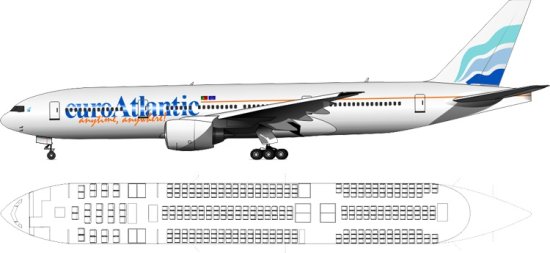 Le B777-200ER d’EuroAtlantic Airways offre deux classes de service avec 30 sièges en classe Affaires et 293 en cabine principale.