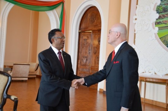 Le haut fonctionnaire américain, Robert Jackson, accompagné du chargé d’affaires Eric Wong, et du conseiller politique Mme Otallah Nicole, ont été reçus par le président Hery Rajaonarimampianina. La rencontre a permis un tour d’horizon de la coopération entre les deux pays et des principes démocratiques qui importent aux deux gouvernements.