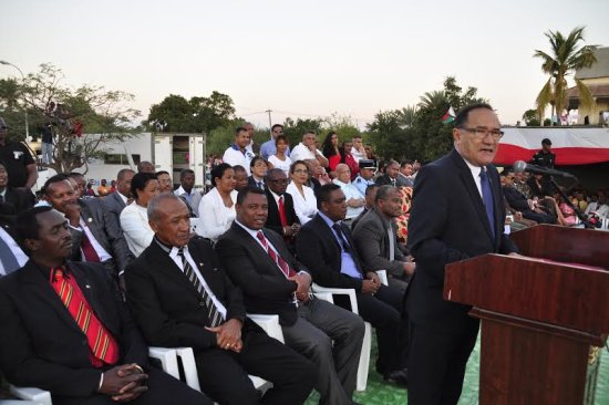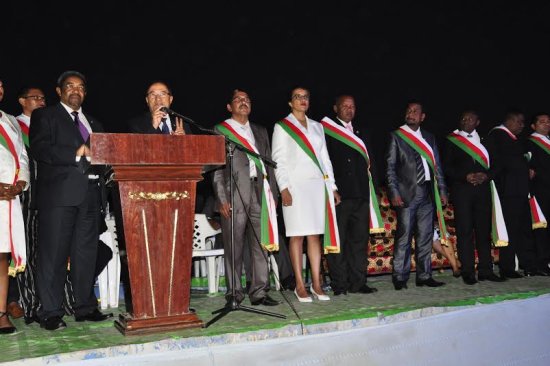 Outre le lancement de l’opération coup d’arrêt, une autre cérémonie s’est tenue sur la même place : celle de la remise officielle par le Président de l’Assemblée Nationale Jean Max Rakotomamonjy de l’écharpe tricolore, le fameux « samboady » aux députés élus dans les districts de l’ex-province de Toliara et de l’ex-province de Fianarantsoa.