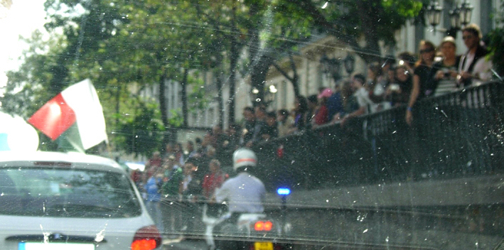 Il brandissait juste avec fierté le drapeau de votre pays (ou de votre demi-pays si vous avez la double nationalité) et je ne pense pas qu’il faille être fier de la manière dont les forces de l’ordre ont réprimé sa manifestation.